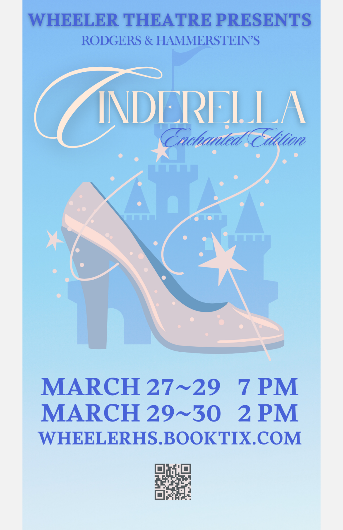 Wheeler Theatre brings the classic love story of Cinderella to the stage, told through the eyes of her Fairy Godmother. In a beloved tale of dreams, love and new beginnings, Cinderella is a young woman living in servitude to her cruel stepmother, all while dreaming of a better life. With a little help from her Fairy Godmother, Cinderella is transformed into a beautiful young maiden so she may attend the royal ball. An evening of pageantry and dancing leads her to meet her Prince Charming; but the magic expires at midnight. Young and old will not want to miss seeing true love’s persistence prevail.
